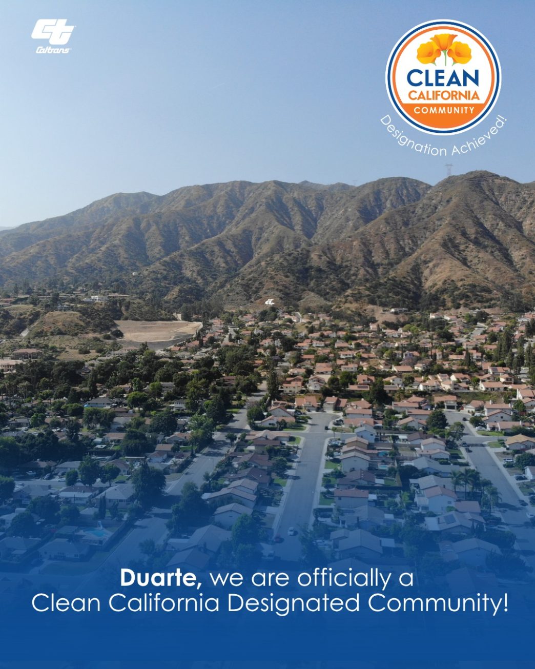 The City of Duarte has been recognized as a Clean California Community, a designation awarded through Caltrans’ statewide Clean California initiative.