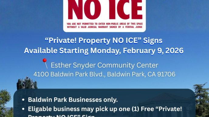 Baldwin Park Press Top Posts ‘No ICE’ signs now available for Baldwin Park businesses byStaffFebruary 12, 2026